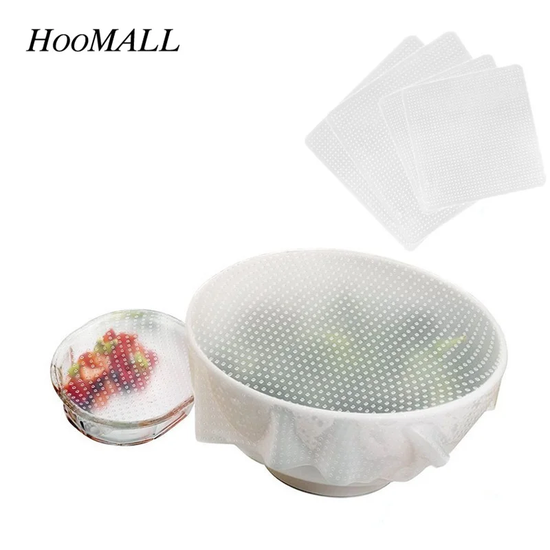 Best Hoomall 4Pcs/set Sealed Silicone Cling Film Fresh Food Cover Wrap Kitchen Stretch Fresh Keeping Container Lid Saran Wrap Tool offers